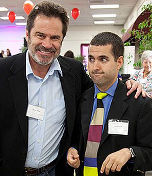 Comedian Dennis Miller shares a moment with a fan from Alpha Resource Center of Santa Barbara at the annual Circle of Life luncheon.[/caption]