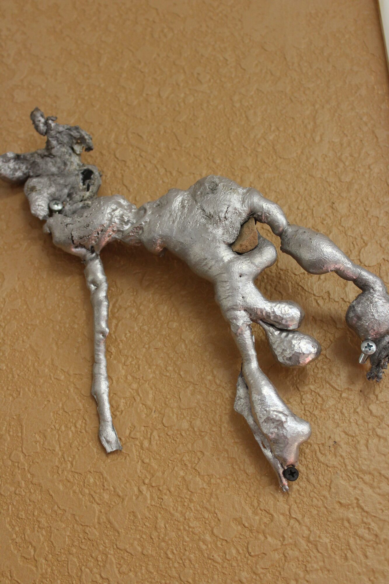 A piece of the vehicle that started the Whittier Fire in July 2017 hangs in the Camp Whittier office as a reminder of the devastating event.[/caption]