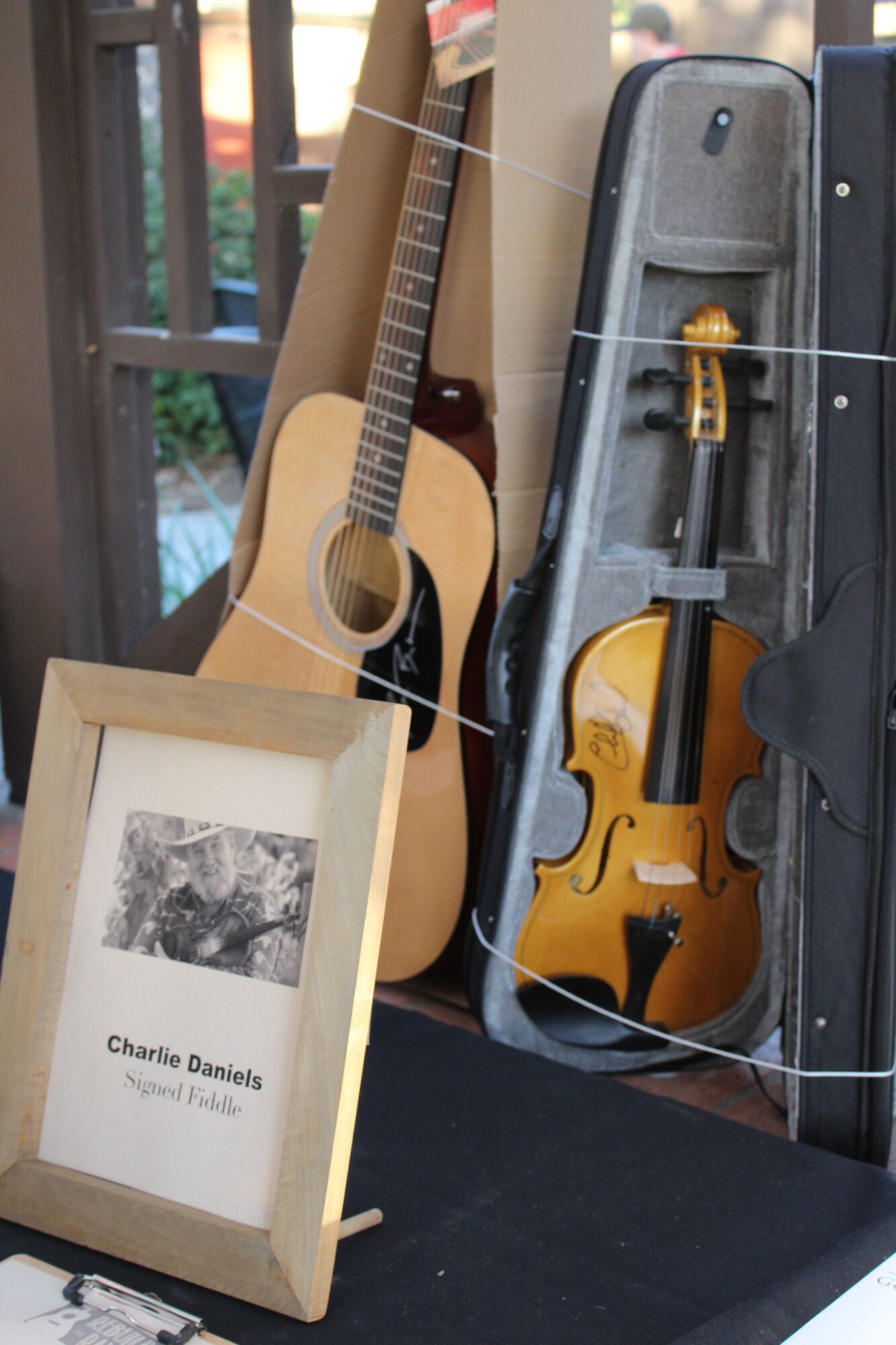 Country music legend Charlie Daniels sent an autographed fiddle for the silent auction.[/caption]
