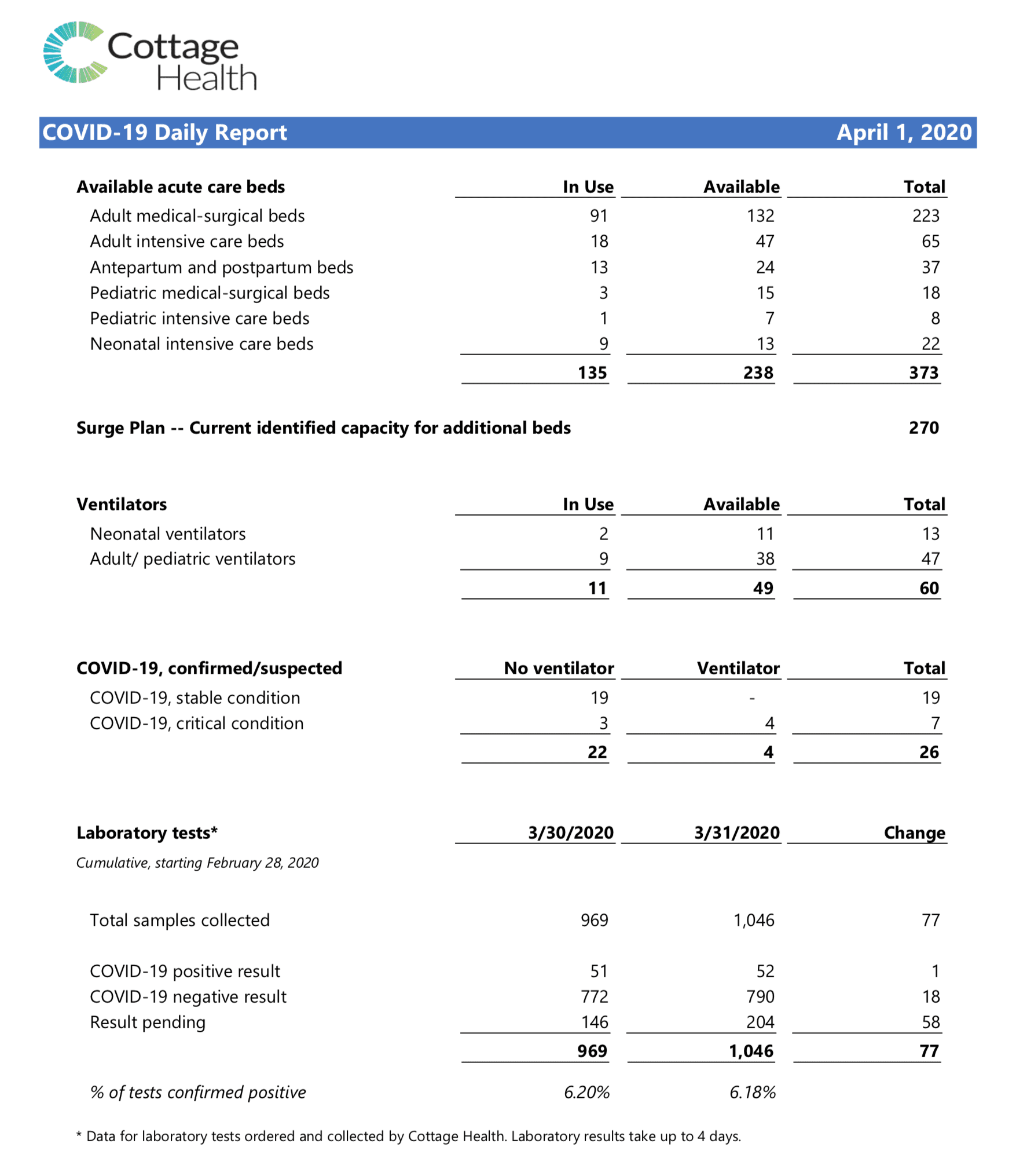 Cottage Health gives updated stats on COVID-19 cases they're treating