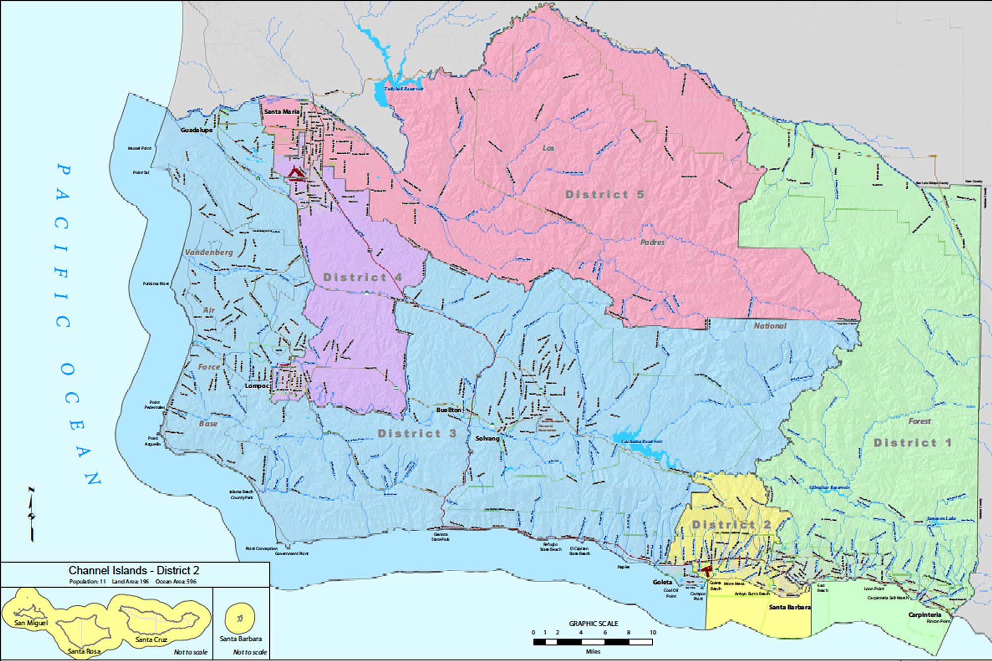 The current map for the Third District groups together Isla Vista and southwestern Goleta with the Santa Ynez Valley, part of the Lompoc Valley and Guadalupe.