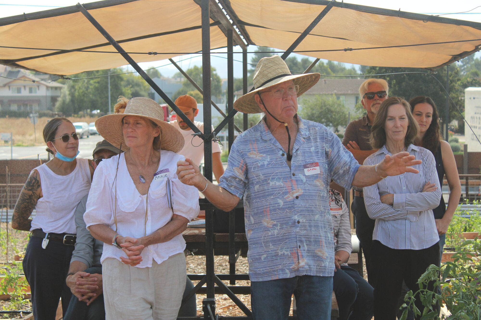 The nonprofit Buellton Community Garden (BCG), more than five years in the making, hosted an official kickoff at the lot located a block west of Avenue of Flags on Saturday, Sept. 7. Artist Annie Yakutis and her husband, Greg Erickson, hosted the reception, which included such local luminaries as County Supervisor Joan Hartmann, and Mayor Dave King, City Councilmembers Elysia Lewis and David Silva, and City Manager Scott Wolfe from Buellton.