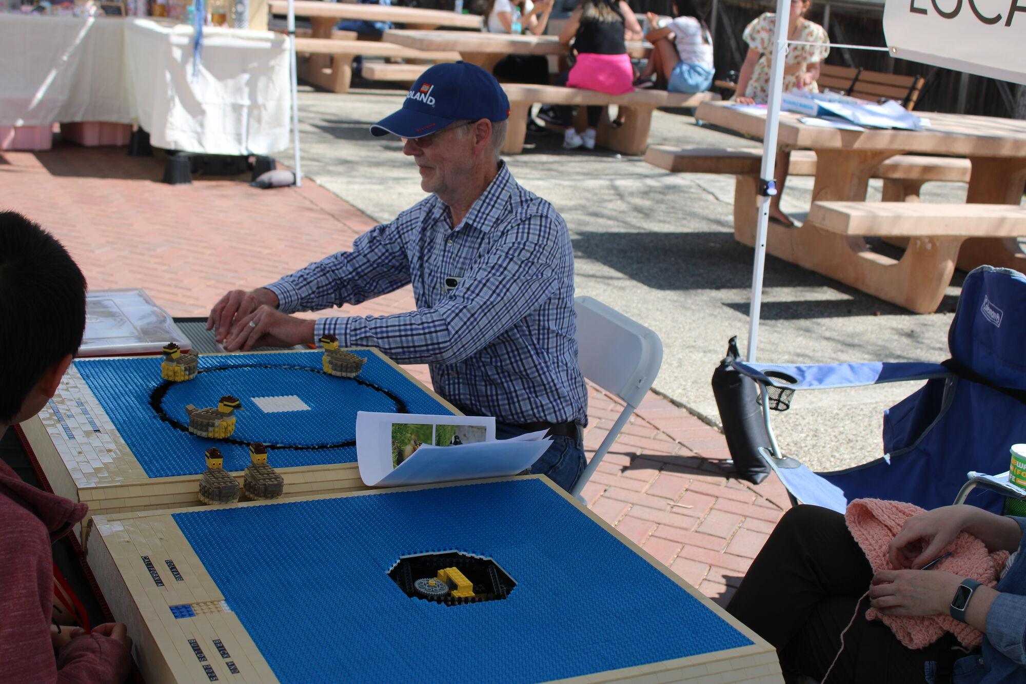 One of those builders, John Cooper of San Diego, was set up at Solvang Park, near a public "brick pit" where kids and their parents could build things out of random Lego pieces, various vendors, and a live band playing at the gazebo.