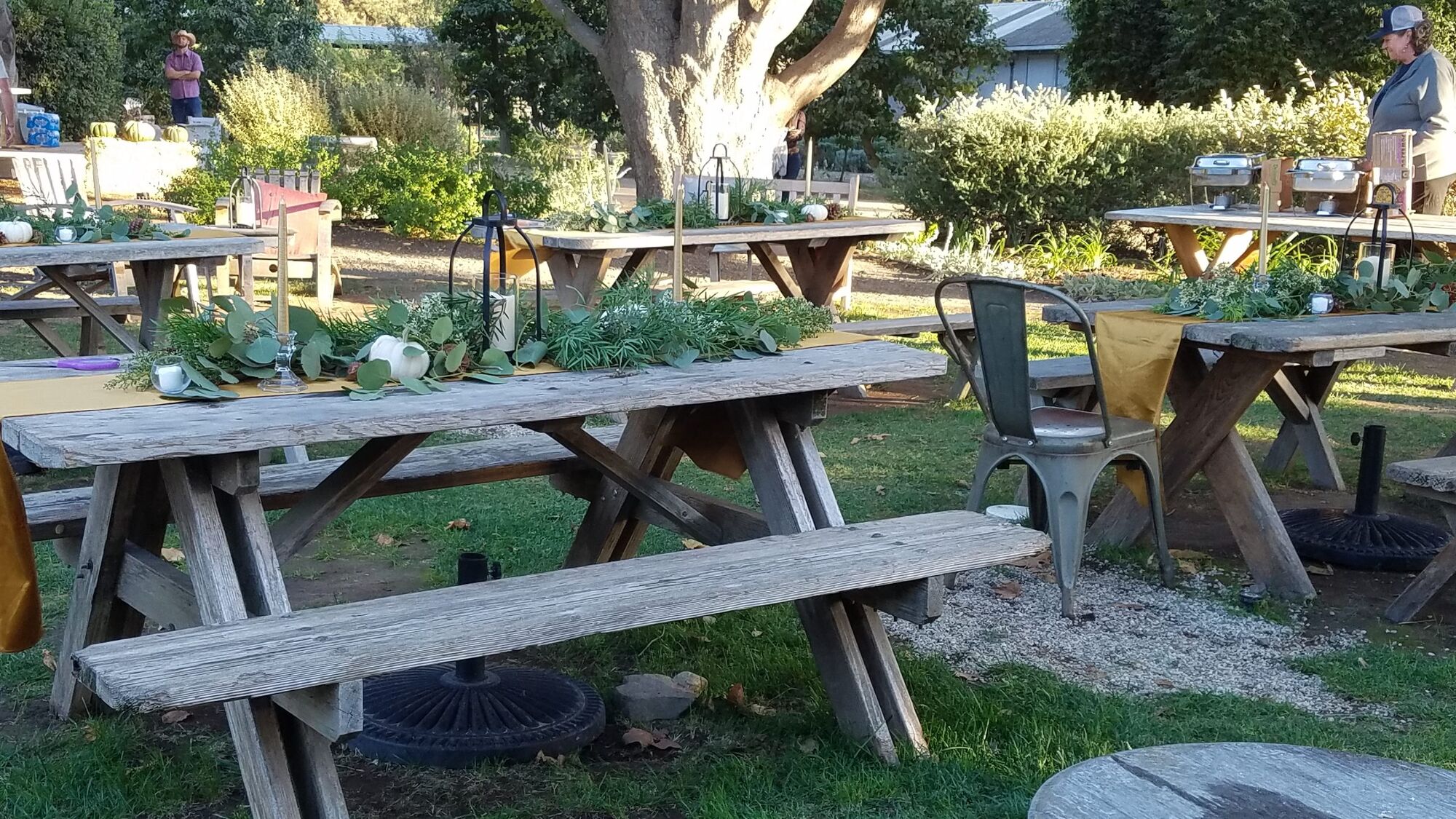 The setting for the event was in the outdoor garden at Buttonwood surrounded by peach orchards, olive trees, and vineyards. Twinkling lights were scattered throughout the garden with wooden tables dressed with foliage.