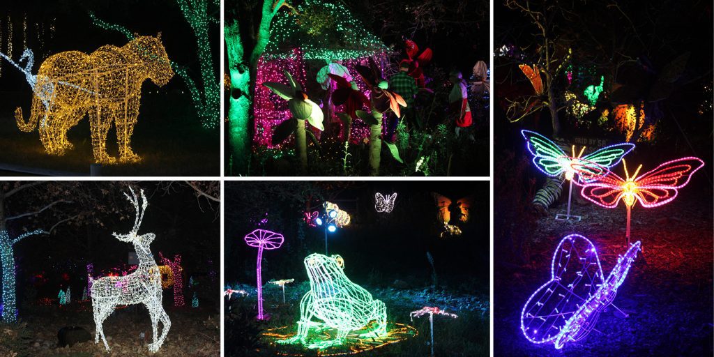 On Fridays, Saturdays, and Sunday from Dec. 5-21, visitors could walk the paths from 5 to 9 p.m. and see glittering display along with the usual flora. Holiday displays were shown along with likenesses of forest creatures, butterflies, and mushrooms, among others — all in a wide variety of colors.