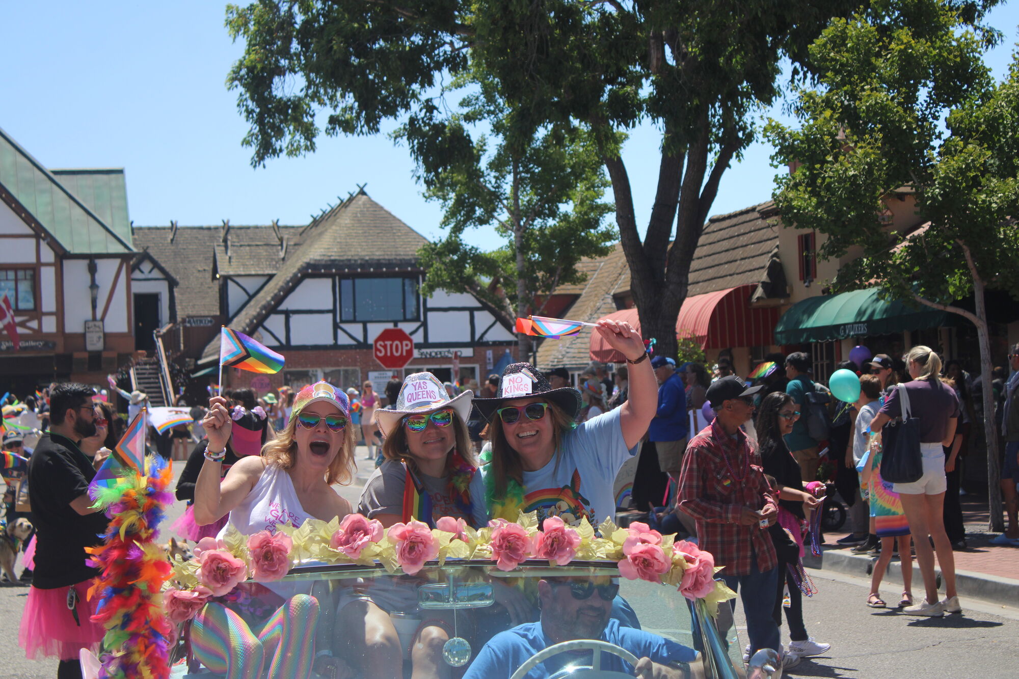 Many in the parade gave a nod to those protests in Solvang, some with signs like "No Kings, just Queens," and similar messages among the parade route.