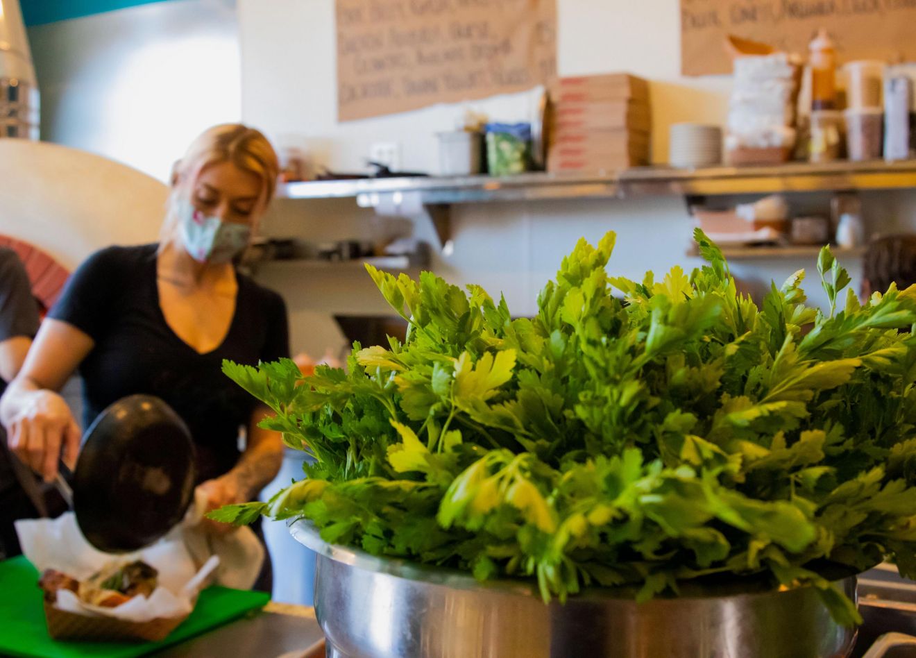 “My longtime electrician, Joey White, is Amber White’s husband; Amber owned The Beach,” Olsson said. After she closed her site (well before the pandemic), Amber White inquired if Olsson would take over the space, which included a wood-fired oven, he recalled.