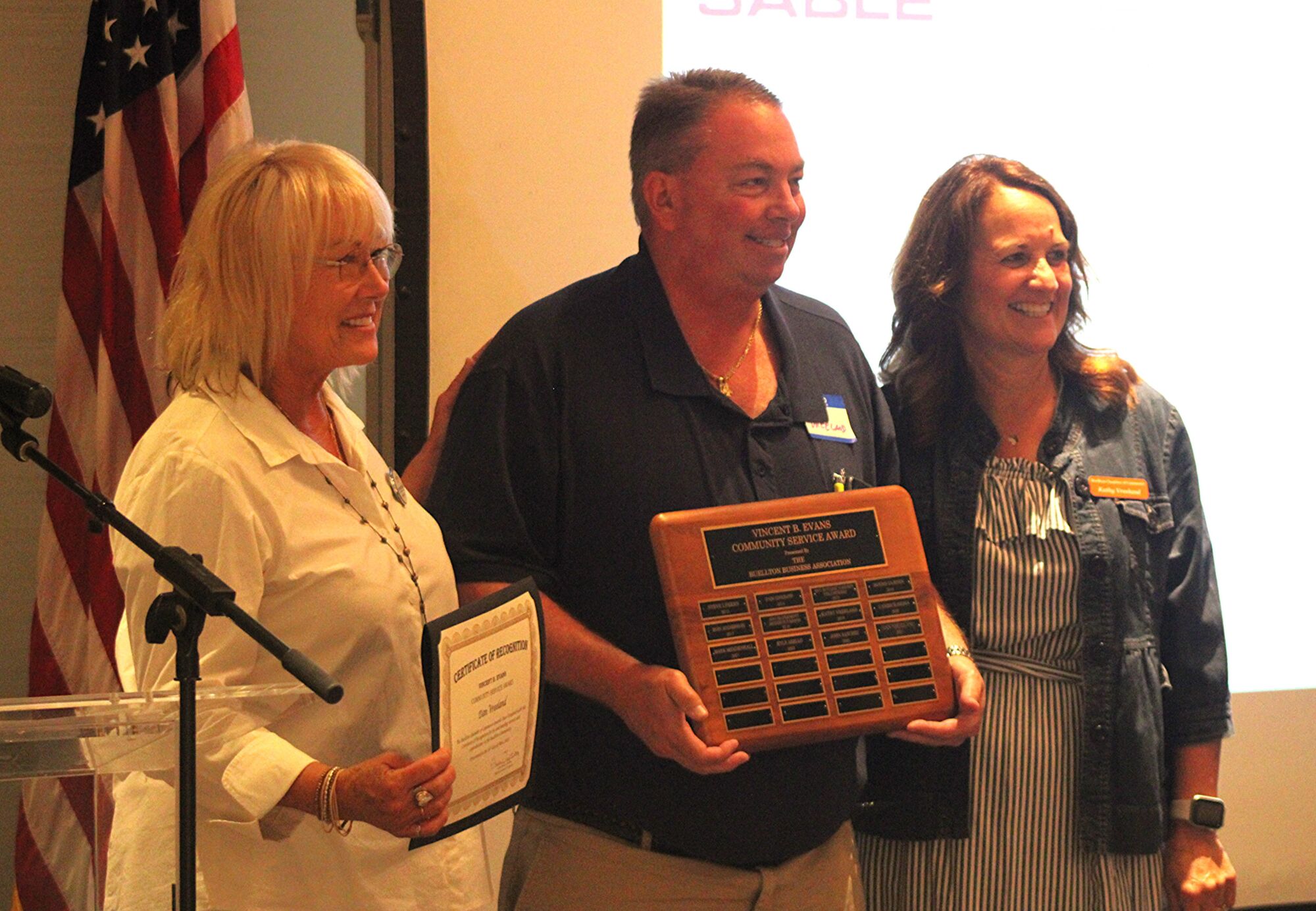 Also, the Vincent B. Evans Award, named for the long-time owner of Pea Soup Andersen and honoring a resident for his service to Buellton, was given to Dan Vreeland, co-owner of Jim Vreeland Ford. The presentation had even more meaning because he received the award from Buellton Chamber of Commerce Executive Director Kathy Vreeland, the emcee of the program -- and Dan's wife -- and good friend and Chamber Board President Tessi Martinez.
