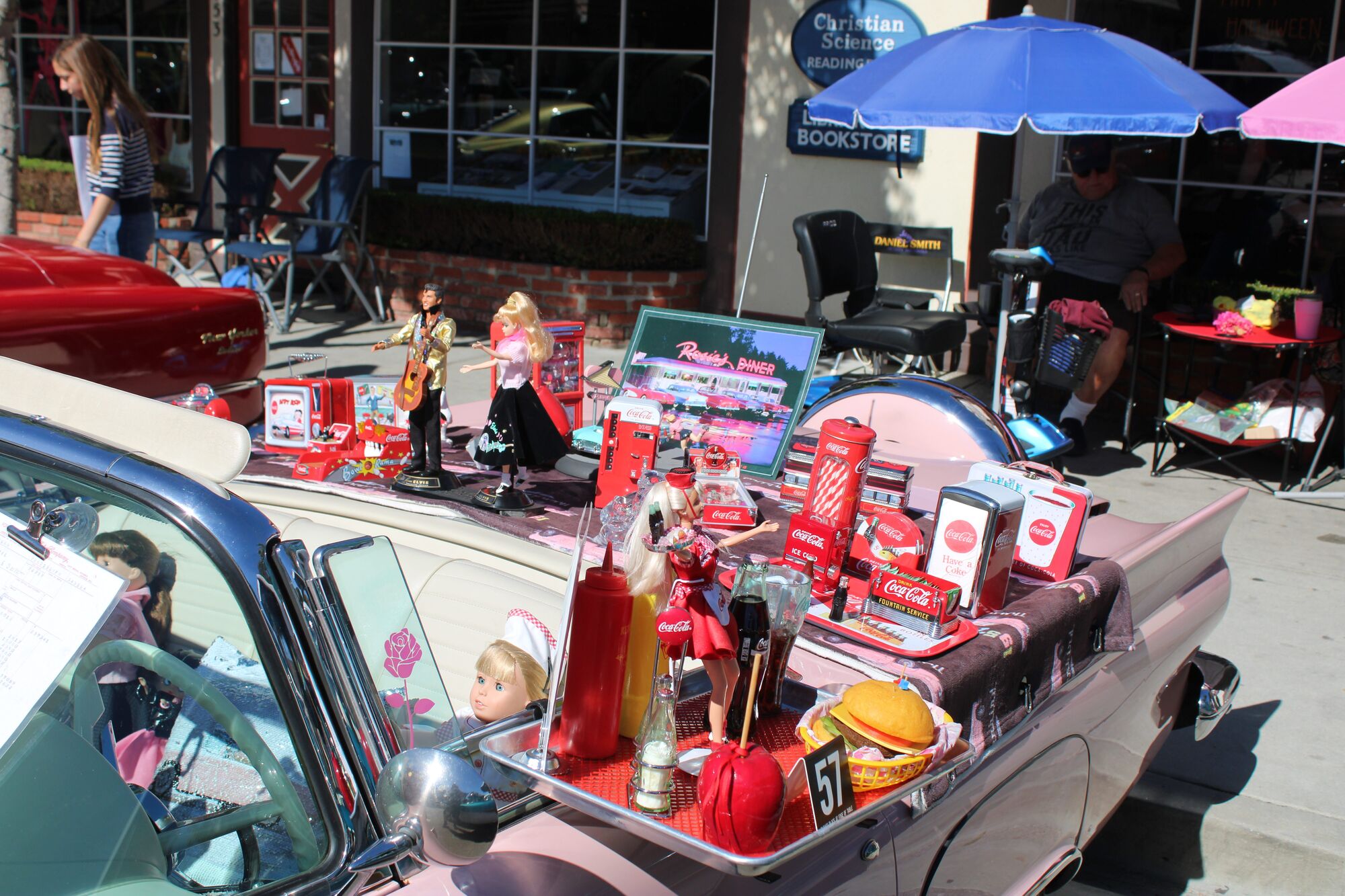 A little farther down the street was a pink 1957 Ford Thunderbird owned by Holly Foley of Fremont, who had the backseat and rear decked out in all sorts of artifacts of the time, like Barbie dolls, lunch pails, and Coca-Cola souvenirs.