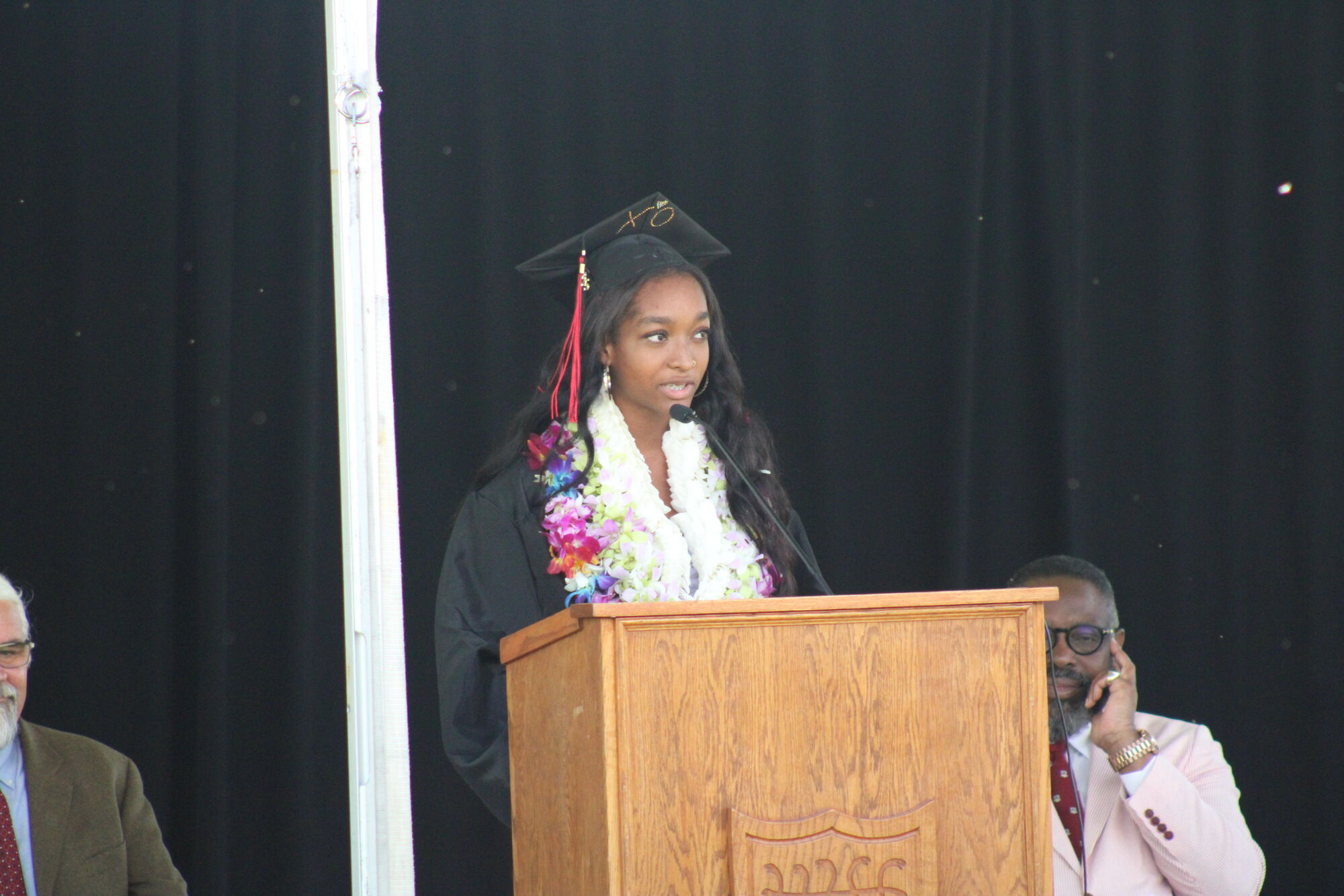 An then there was Melia Collins-Byrd, the lone student speaker on the day, cited a a post-apocalyptic novel titled "Station 11" that Dunn student read this year. It's about a society that's crippled by a flu that wipes out most of the population, but a character expresses the idea that everything happens for a reason, an idea that permeates throughout the book.