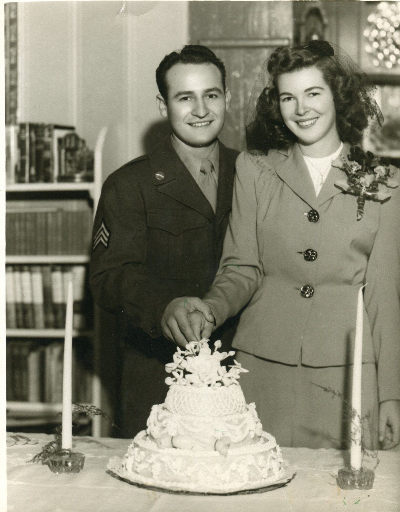 “My husband was in WWII in Europe in the Armored Infantry. Luckily he came home. We wrote letters to each other nearly every day — all of which were censored. When he got home we went into the dairy business.”