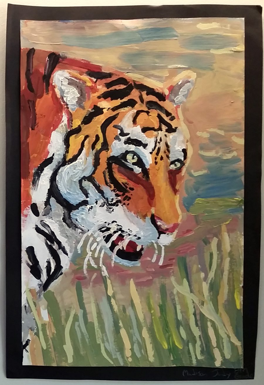 This year’s show, titled “Creative Critters: A Mixed Media Art Show,” features 80 artworks employing a wide variety of techniques from seven different art classes ranging from fourth to eighth grades, taught by two different teachers.