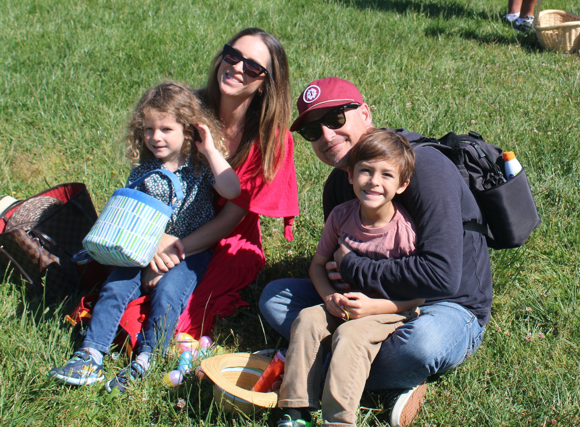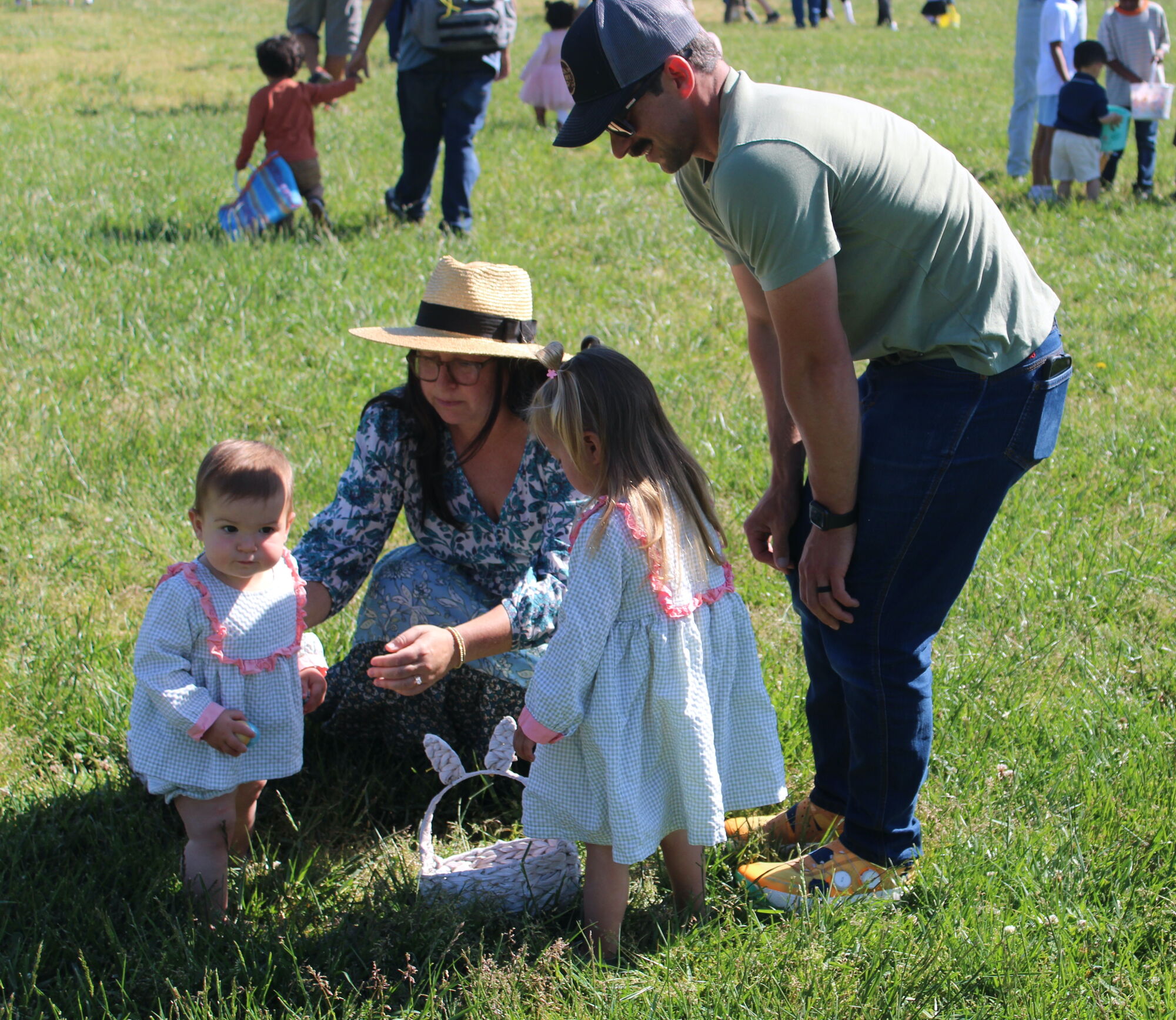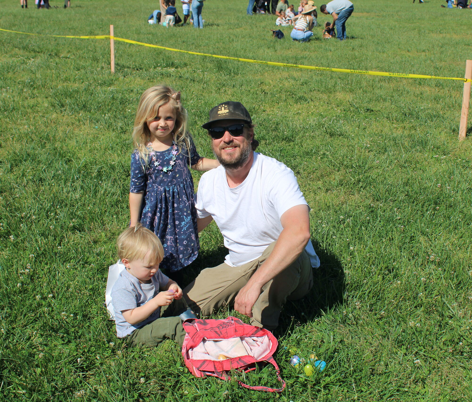 Out on the lawn, after the hunt, the Pfefferle family — Logan and Aubrey, along with their kids Tatum, 3, and Parker, 1 — were opening the eggs the kids got and enjoying the nice day.