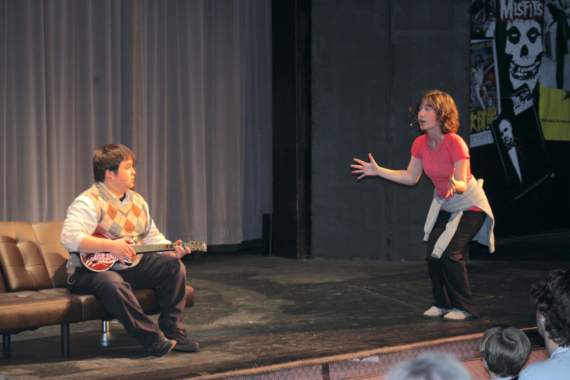 For those not familiar with that movie, the story follows Dewey Finn (played here by Harvey Ho), an aspiring rock star who gets kicked out of his own band and loses his job at the same time. He happens to take a call meant for his roommate Ned Schneebly (Signy Hansen) and ends up assuming Ned's identity to take a teaching job at Horace Green School.