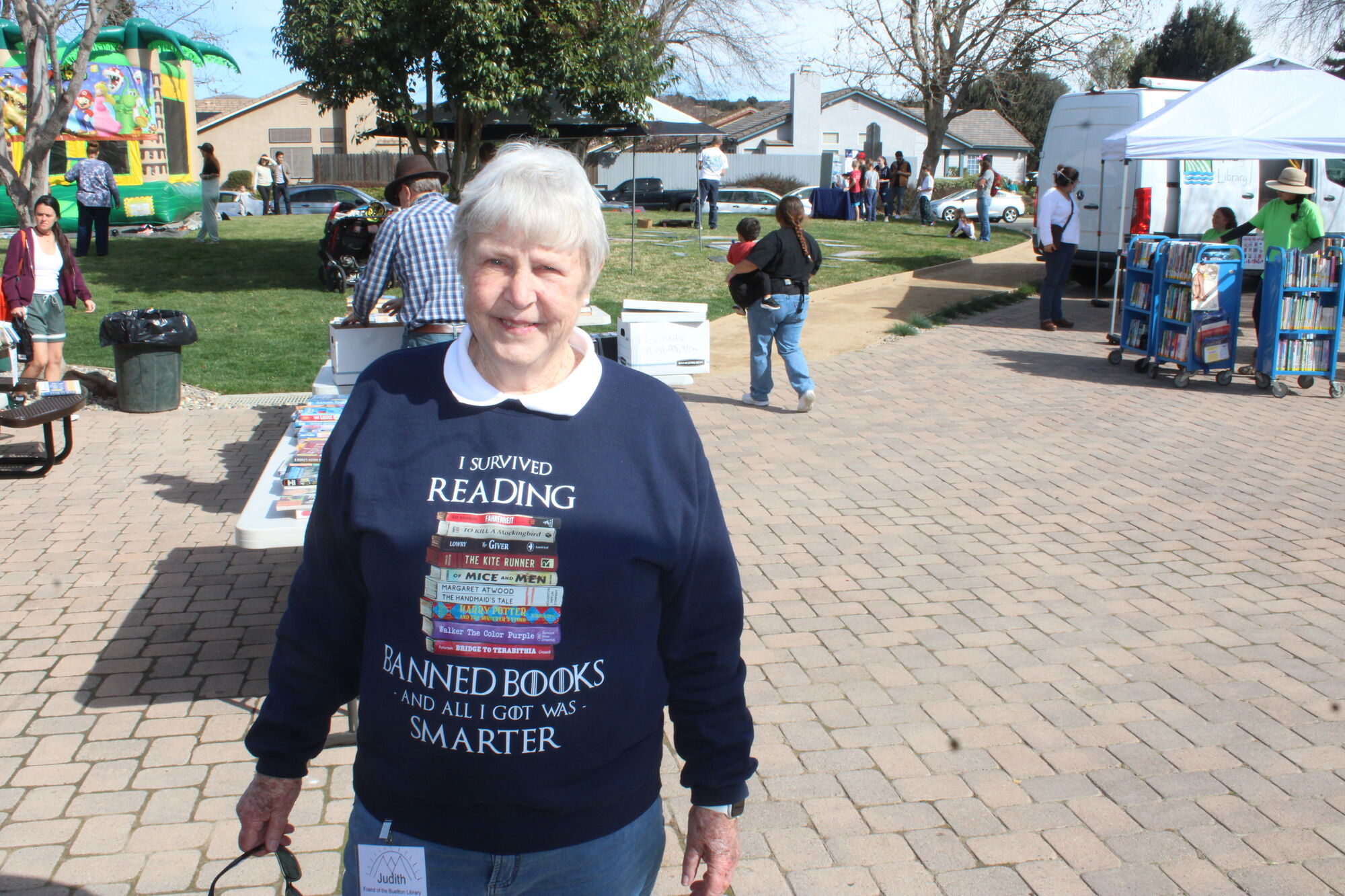 In fact, Ashley Jenkins, the founder and board president for the museum was able to bring out a few games and activities for the kids outside the library, which also had an inflatable slide for entertainment. Also outside the building was a used book sale, a bookmobile from the Isla Vista Library, and staff inside to anwer any questions about the new place.