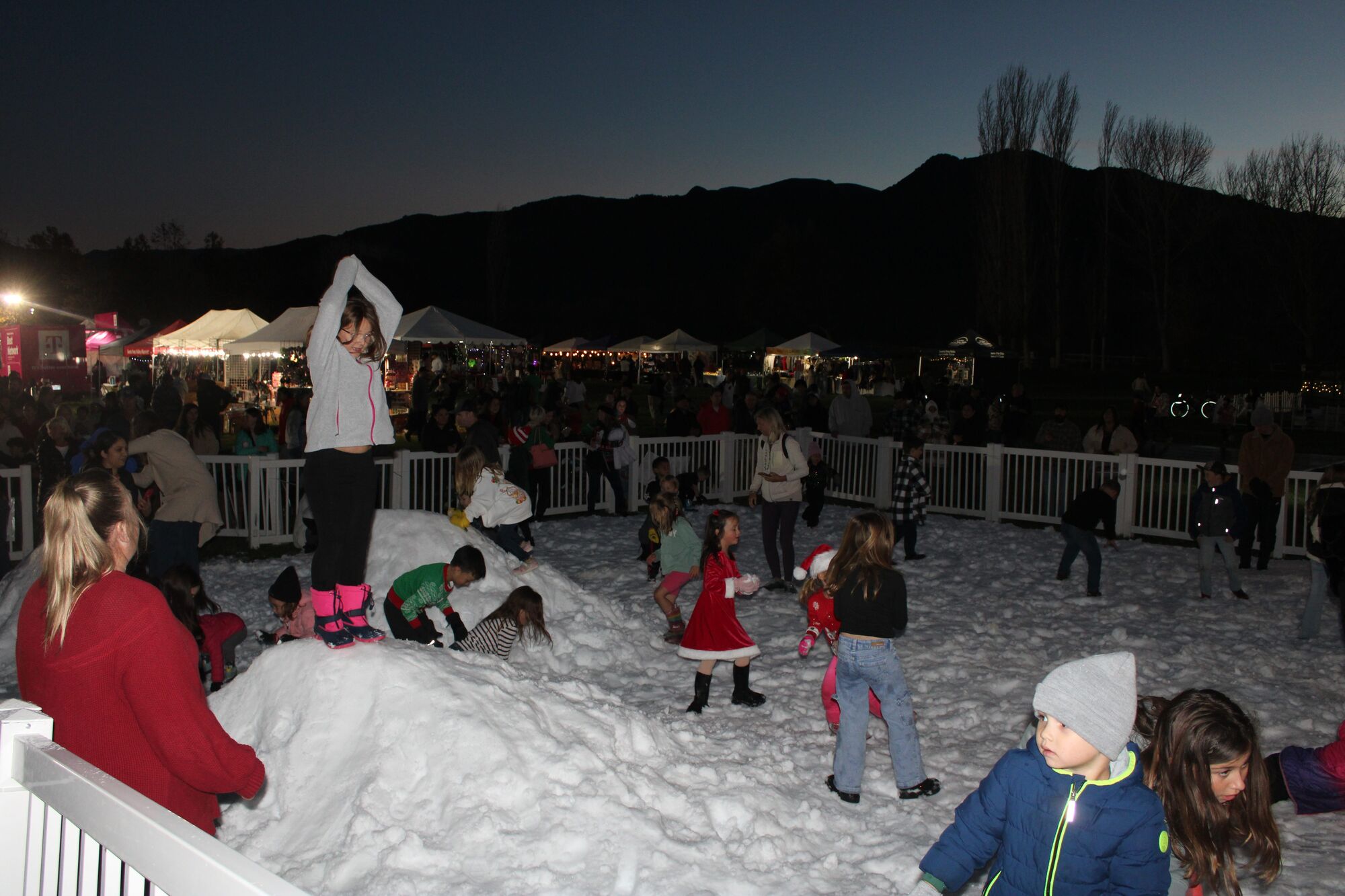 During the annual event on Sunday, Dec. 7, which capped a four-day period of Christmas events all over the Santa Ynez Valley, folks arriving to River View Park to enjoy the “20 Tons of Snow” — a trademark of the Winter Fest — came upon workers from the snow supplier halfway through spraying the white stuff on the corner of the park lawn as a line formed.The ice company that supplied the snow was held up at a previous assignment, according to Buellton Chamber of Commerce Executive Director Kathy Vreeland.