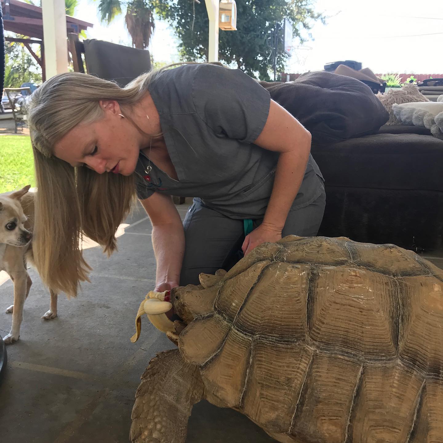She loves helping animals of all kinds, including chickens, turtles, cats, dogs, horses and more. The most exotic she has cared for in the valley are zebras and buffalo. During her years in Hawaii, she treated sea turtles and dolphins.