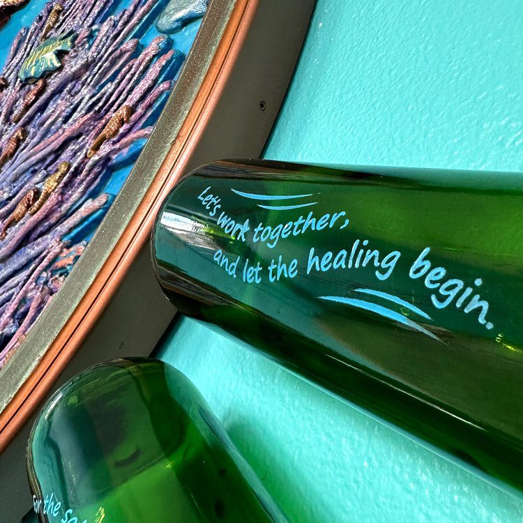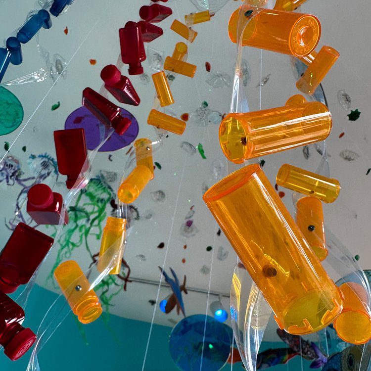 “'Message in a Bottle' is a lively installation that illustrates the harmful impact of single-use plastics on our oceans," Criss said about her work. "The installation features a dynamic swirl of marine life that celebrates the incredible beauty and diversity of the ocean world, drawing attention to the astonishing richness of our planet's underwater ecosystem. Much of the artwork is constructed with discarded plastics, serving as a poignant reminder of the urgent need to reduce plastic waste and promote environmentally sustainable practices."